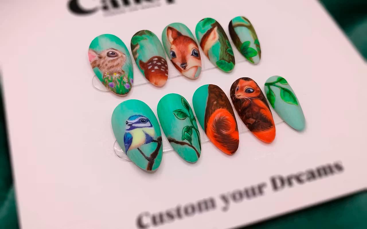 Les coffrets Nailart press-on nails Canopée sont entièrement peints à la main. Ils vous offrent la liberté de porter et retirer vos capsules quand vous le souhaitez.