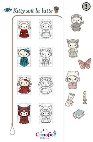 A travers 10 planches exclusives, Kitty se réinvente : tour à tour tendre, drôle, ou audacieuse, elle s’amuse des thèmes les plus variés tout en gardant sa touche irrésistible sur vos ongles. Ces stickers sont pensés pour être à la fois mignons, fidèles aux univers qu’ils évoquent et faciles à réaliser sur vos ongles.