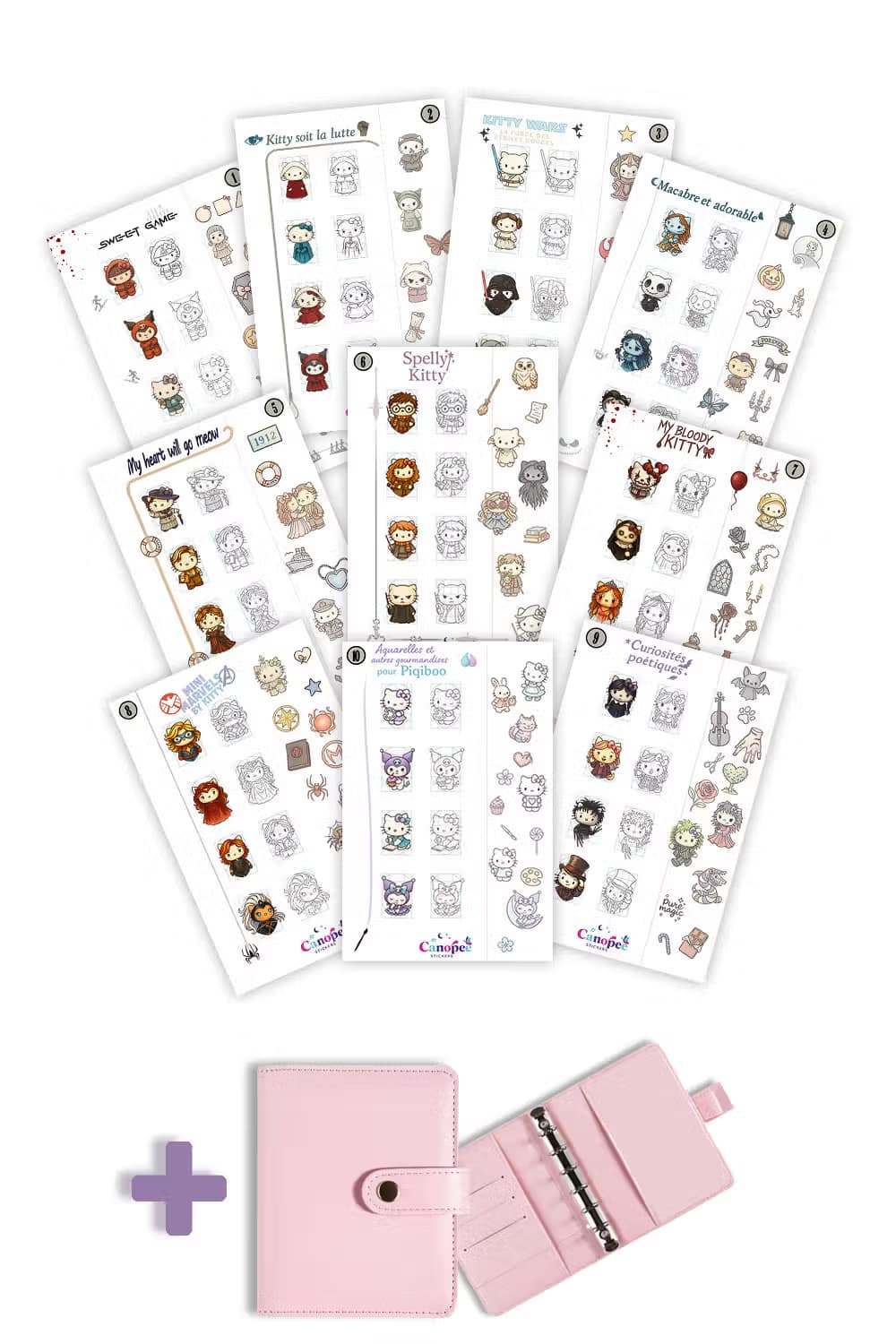 Laisse parler ton style, choisis librement 5 planches parmi nos thèmes Kitty, toutes illustrées avec amour. un format idéal pour créer ta collection personnalisée à ton image.